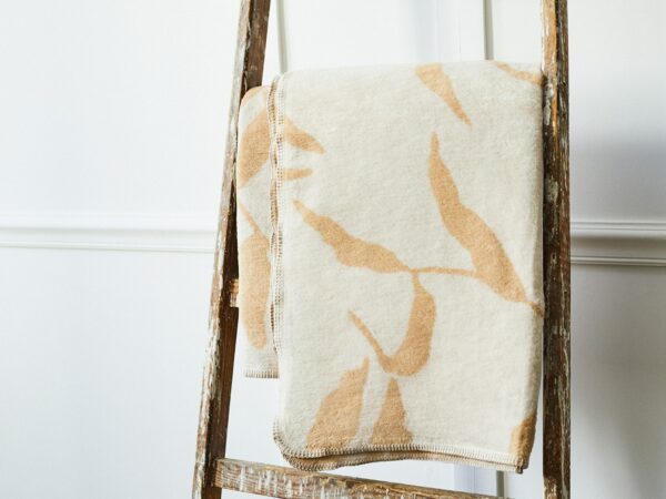 Skład koca Beżowe Liście to w większości bawełna. Dzięki temu jest niezwykle przyjemny w użytkowaniu. Krawędzie koca zostały obszyte ozdobną nicią, co nadaje mu wyjątkowego charakteru. Wzór to czysta inspiracja naturą. Jest to autorski projekt naszej graficzki. Nie znajdziesz takiego koca nigdzie indziej!