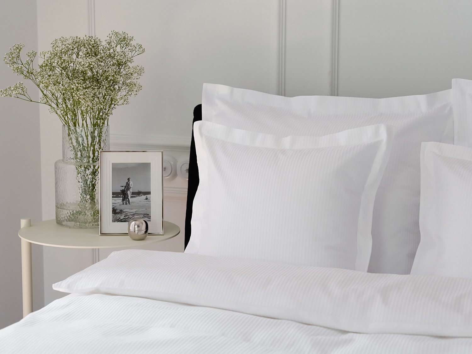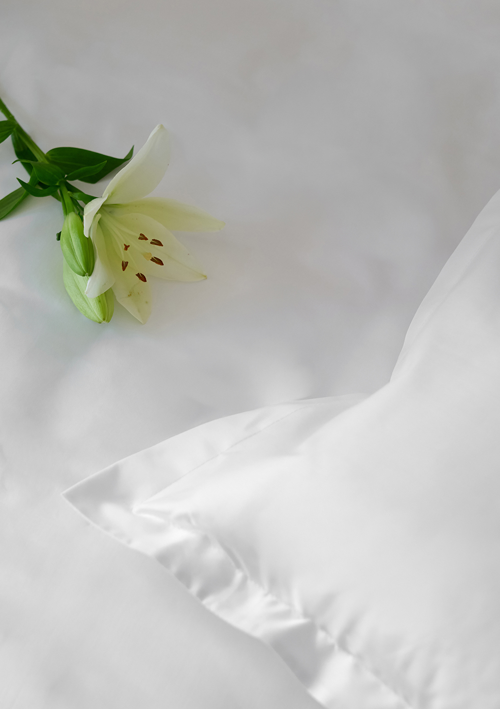 Uszyta z najwyższej jakości egipskiej bawełny o gramaturze 140 g/m², zachwyca subtelnym połyskiem i jedwabiście gładkim splotem – to esencja dyskretnego luksusu w sypialni. Materiał łączy wyjątkową miękkość z trwałością – jest odporny na zagniecenia i doskonale utrzymuje formę nawet po wielu praniach.
