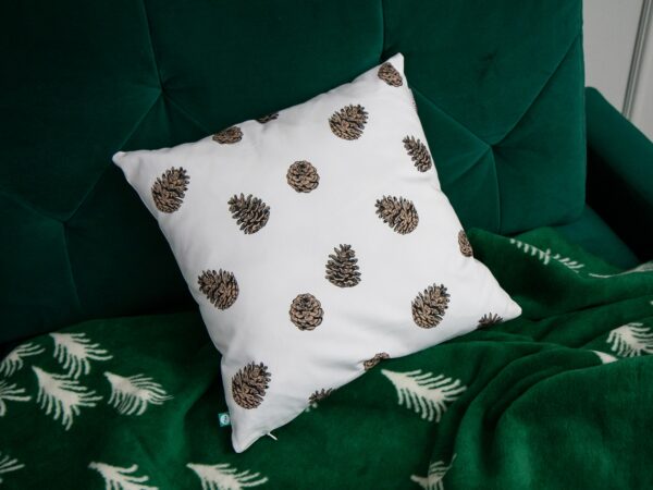 Szyszki często traktujemy jako ozdoby – czy jako element stroików, czy leżące luzem. Poza funkcją ozdobną, szyszki są też znane z właściwości prozdrowotnych, a syrop z nich wyleczył już nie jeden kaszel. Możemy śmiało założyć, że to właśnie szyszka sosnowa najczęściej występuje w naszych polskich lasach. Dlatego zdecydowaliśmy się przenieść właśnie ją na nasze poduszki ozdobne 45×45. Jest to wzór oryginalny i niepowtarzalny, malowany ręcznie i przeniesiony na materiał.
