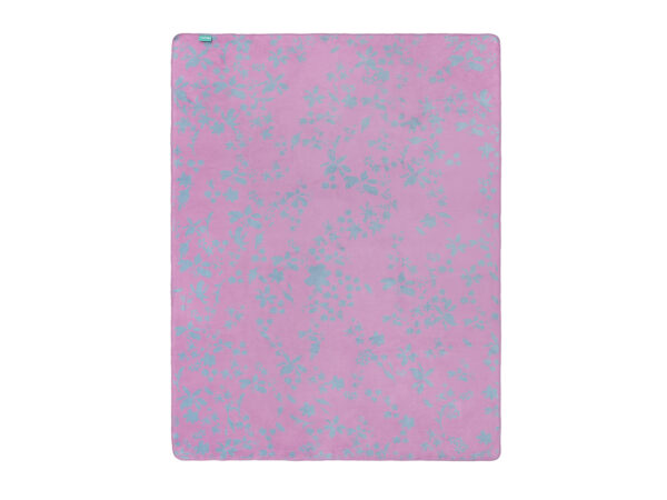 Kwiatów nigdy dość we wnętrzach! Wyznajesz tę zasadę? Jeśli tak, wzbogać swoją sypialnię lub salon o dwustronny koc w kwiatki. Spójrz na jego kolor. Stonowane jasne tło łączy się tutaj z roślinnością w łagodnym odcieniu różu. A kiedy odwrócisz go na drugą stronę, zobaczysz nieco inne zestawienie. Różowy koc i kwiaty w kolorze delikatnego błękitu.